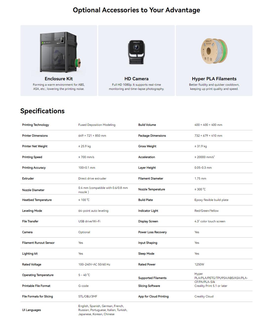 For detailed information about the printer, visit the official free knowledge-sharing platform: Creality Wiki.